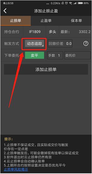 文华手机软件能设置动态追踪止损吗? (文华财经WH6赢顺V6.7)投资者咨询:文华手机软件能设置动态追踪止损吗? (文华财经WH6赢顺V6.7)来源:文华财经 日期:2018-8-23 20:54 文华手机软件能设置动态追踪止损吗?技术人员回复日期:2018-8-23 21:00 可以的,参考下图位置点击可以切换为动态追踪的方式