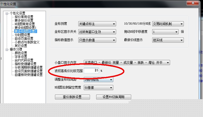 文华K线上面标记的最高点和最低点 (文华财经WH6赢顺V6.7)投资者咨询:文华K线上面标记的最高点和最低点 (文华财经WH6赢顺V6.7)来源:文华财经 日期:2019-4-15 11:03 文华K线上面标记的最高点 和最低点 是通过什么办法得到的技术人员回复日期:2019-4-15 11:05波段高低价,是根据设置的比例,按照当前页面的K线根数自动计算比如当前屏幕显示100根K线,波段高低价的比较范围设置为15%,那么最高价大于其前后100*15%=15根K线的最高价就是波段高点您可以在右上角》个性化》个性化设置,参考截图位置位置波段高低价的范围 文件名:12.jpg