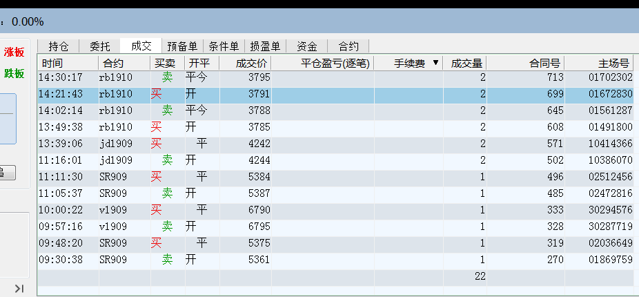 投资者咨询:“成交”那一栏里不显示手续费和平仓盈亏(逐笔) (文华财经WH6赢顺V6.7)