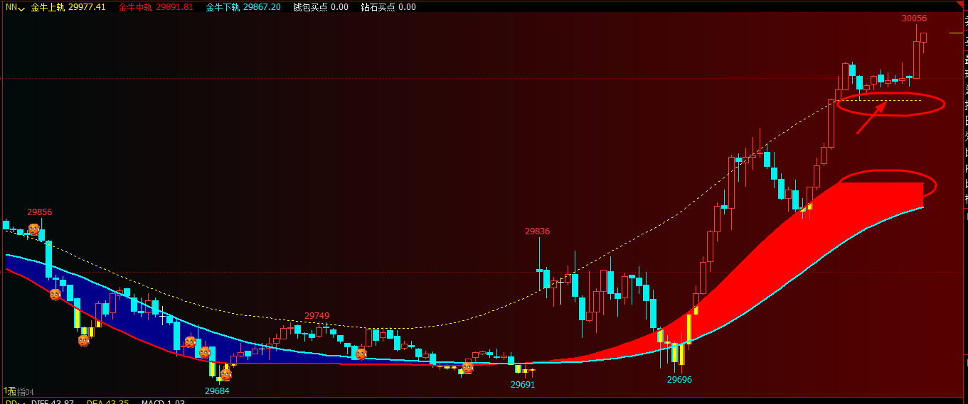 RSVD:=(INDEXC-LLV(INDEXL,19))/(HHV(INDEXH,19)-LLV(INDEXL,19))*100; KD:=SMA(RSVD,3,1); DD:=SMA(KD,3,1); J1:="KDJ.J"(27,5,3),colorred; PARTLINE(J1,J1>REF(J1,1),RGB(250,10,10),J1<=REF(J1,1),RGB(250,250,250)),LINETHICK3; STICKLINE(KD>=DD,KD,DD,10,0),Color0000BF; STICKLINE(KD>=DD,KD,DD,6,0),Color0000E1; STICKLINE(KD>=DD,KD,DD,4,0),Color1111FF; STICKLINE(KD>=DD,KD,DD,2,0),Color3D3DFF;//红色 STICKLINE(KD STICKLINE(KD STICKLINE(KD STICKLINE(KD RSV:=(CLOSE-LLV(LOW,13))/(HHV(HIGH,13)-LLV(LOW,13))*100; K:=SMA(RSV,3,1),colorwhite; D:=SMA(K,3,1),coloryellow; STICKLINE(K>=D,K,D,10,0),Color00BFBF; STICKLINE(K>=D,K,D,6,0),Color00E8E8; STICKLINE(K>=D,K,D,4,0),Color1AFFFF; STICKLINE(K>=D,K,D,2,0),Color3EFFFF;//黄色 STICKLINE(K STICKLINE(K STICKLINE(K STICKLINE(K 买卖:= EMA((-3)*(HHV(HIGH,14)-CLOSE)/(HHV(HIGH,14)-LLV(LOW,14))+2.7,9); STICKLINE(买卖<0,k,d,10,0),ColorBD00BD; STICKLINE(买卖<0,k,d,8,0), ColorE300E3; STICKLINE(买卖<0,k,d,6,0), ColorFF11FF; STICKLINE(买卖<0,k,d,2,0), ColorFF3EFF;//粉色 STICKLINE(买卖>2,k,d,10,0),ColorB70000; STICKLINE(买卖>2,k,d,6,0), ColorE30000; STICKLINE(买卖>2,k,d,4,0), ColorFF0B0B; STICKLINE(买卖>2,k,d,2,0), ColorFF3C3C;//蓝色 卖线:85,LINETHICK02,POINTDOT,Color15FF15; 界线:50,LINETHICK02,POINTDOT,ColorFF1EFF; 买线:10,LINETHICK02,POINTDOT,Color28FFFF;