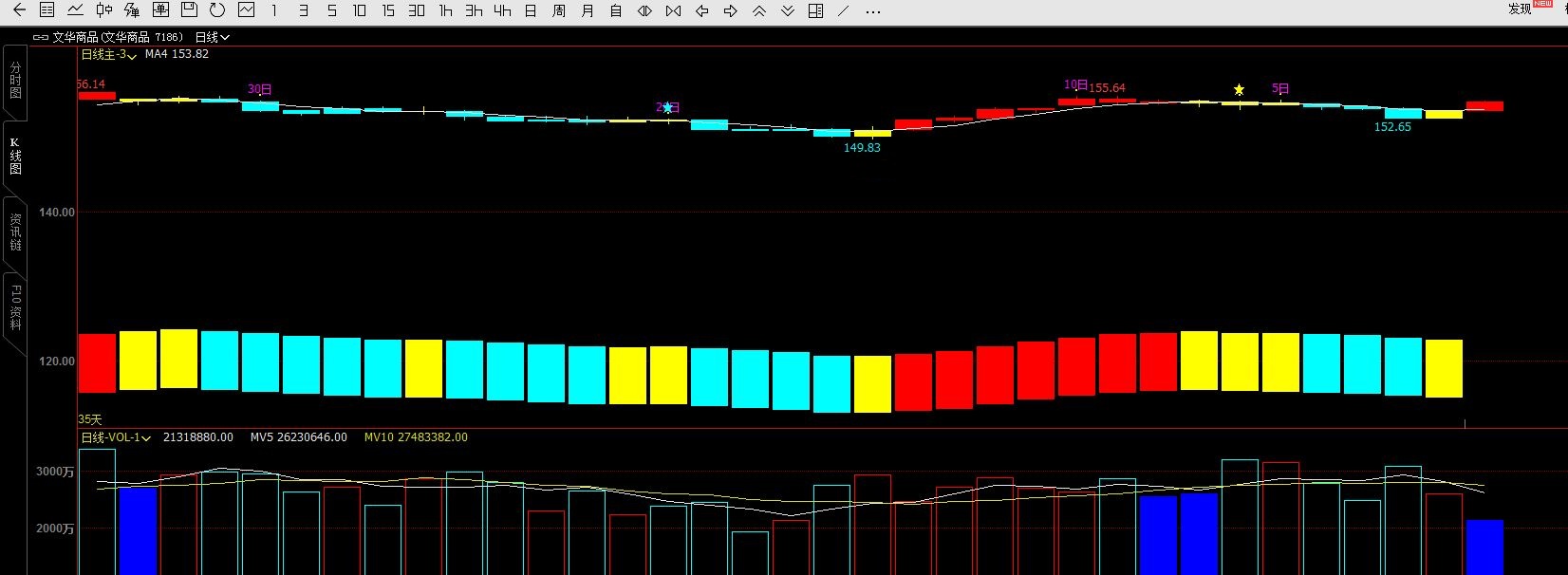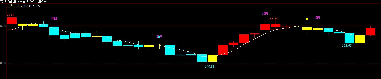 请教老师 我想在文华8上画一条线,条件是这样的 在第二天开盘时,在昨天的K线下面画一根昨天收盘4天线的值,且收盘K线是红色,这根线显示红色,收盘绿色这根线显示绿色。 总结就是当天在走的时候不发,收盘了再发今天收盘的颜色和四天线值
