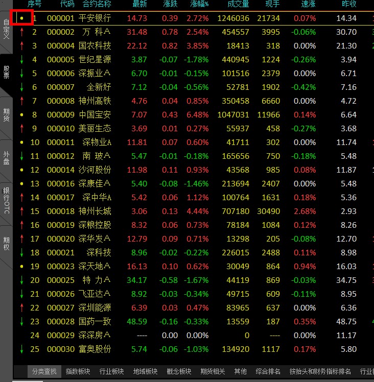 按Alt+S键添加自选股以后,都不知道有没有加上,建议像其他软件一样,对添加到自选股的代码颜色变化一下,以方便区分。