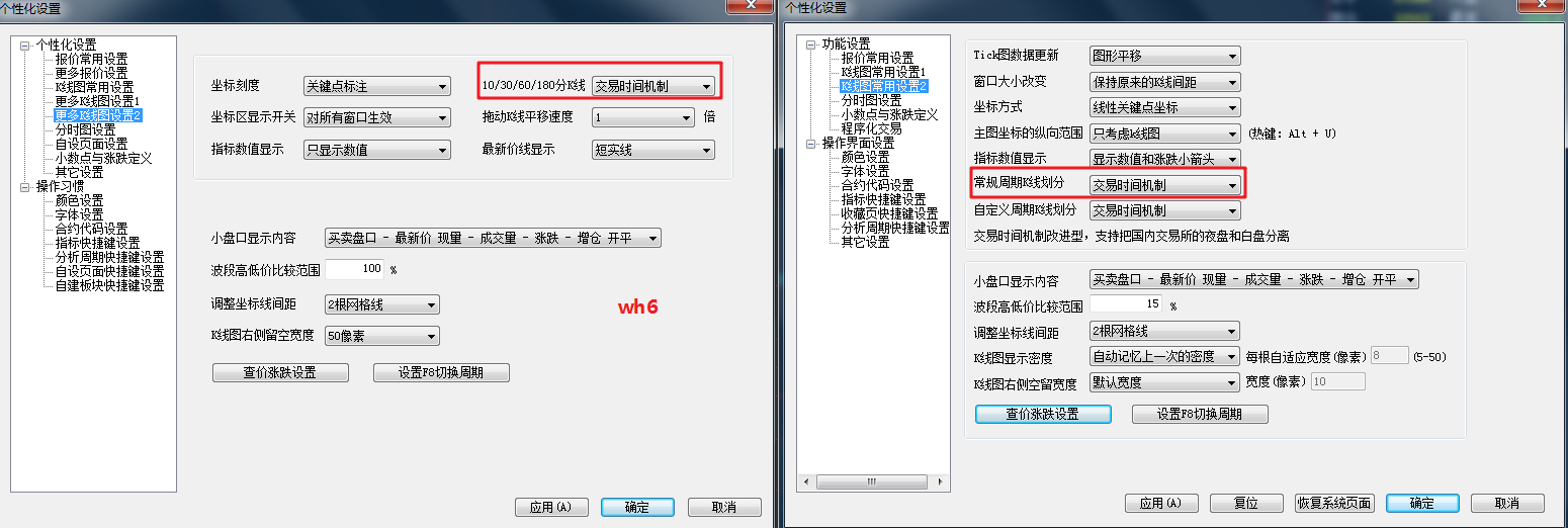 wh6软件右上角个性化-个性化设置-更多k线图设置2