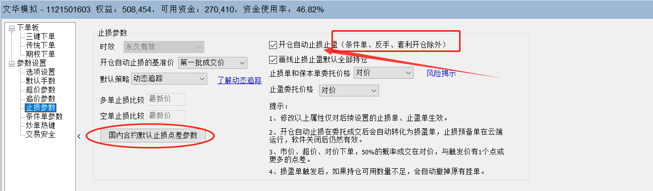 投资者咨询:开仓自动止损止盈的 (文华财经WH6赢顺V6.7)
