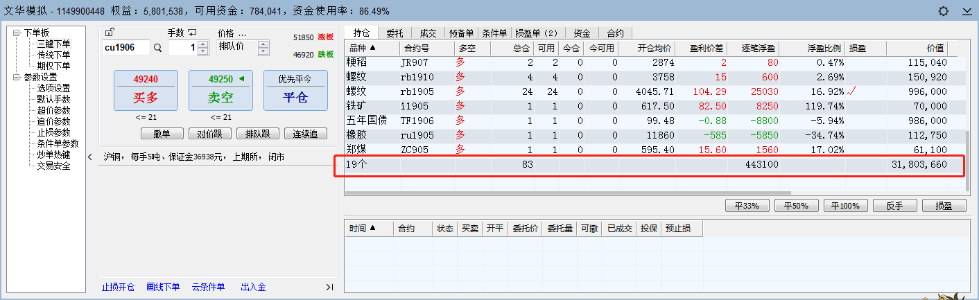 [讨论]如何一次性平仓所有订单? (文华财经WH6赢顺V6.7)投资者咨询:[讨论]如何一次性平仓所有订单? (文华财经WH6赢顺V6.7)来源:文华财经 日期:2019-4-22 15:47 下单主窗口中的持仓里有多空多个品种的订单,如何可以一次性把多个品种的订单一次性全部平仓?技术人员回复日期:2019-4-22 15:49 双击总计一排,即可清仓或者,单击持仓右键》撤平仓单+账户清仓