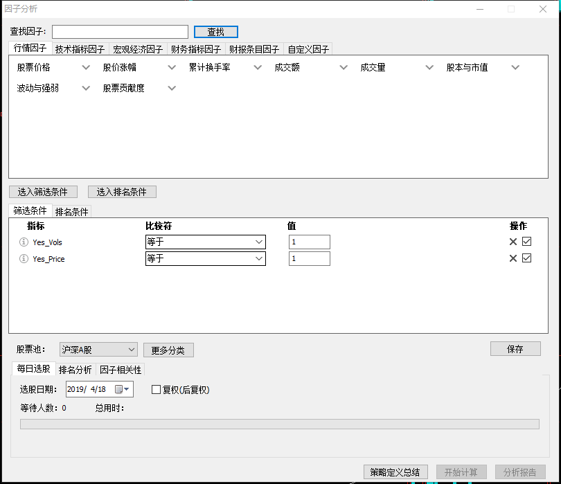 因子选股没有反应 (文华财经wh9)来源:文华财经 日期:2019-4-22 13:01