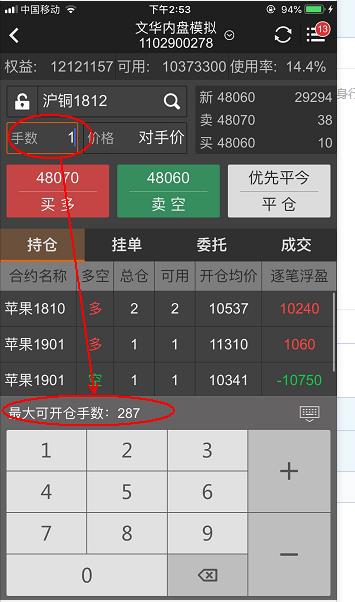 随身行下单时从哪能看到该合约的保证金是多少? (文华财经随身行Android 5.4.6(239))投资者咨询:随身行下单时从哪能看到该合约的保证金是多少? (文华财经随身行Android 5.4.6(239))来源:文华财经 日期:2018-8-23 14:48 随身行下单时从哪能看到该合约的保证金是多少?技术人员回复日期:2018-8-23 14:56 您想要查看保证金实际上也是想要查看可以开仓的最大手数 点击手数框在下方软键盘就可以直接查看到,不需要再自己进行计算了,更加直观的您可以点击看下效果体验下