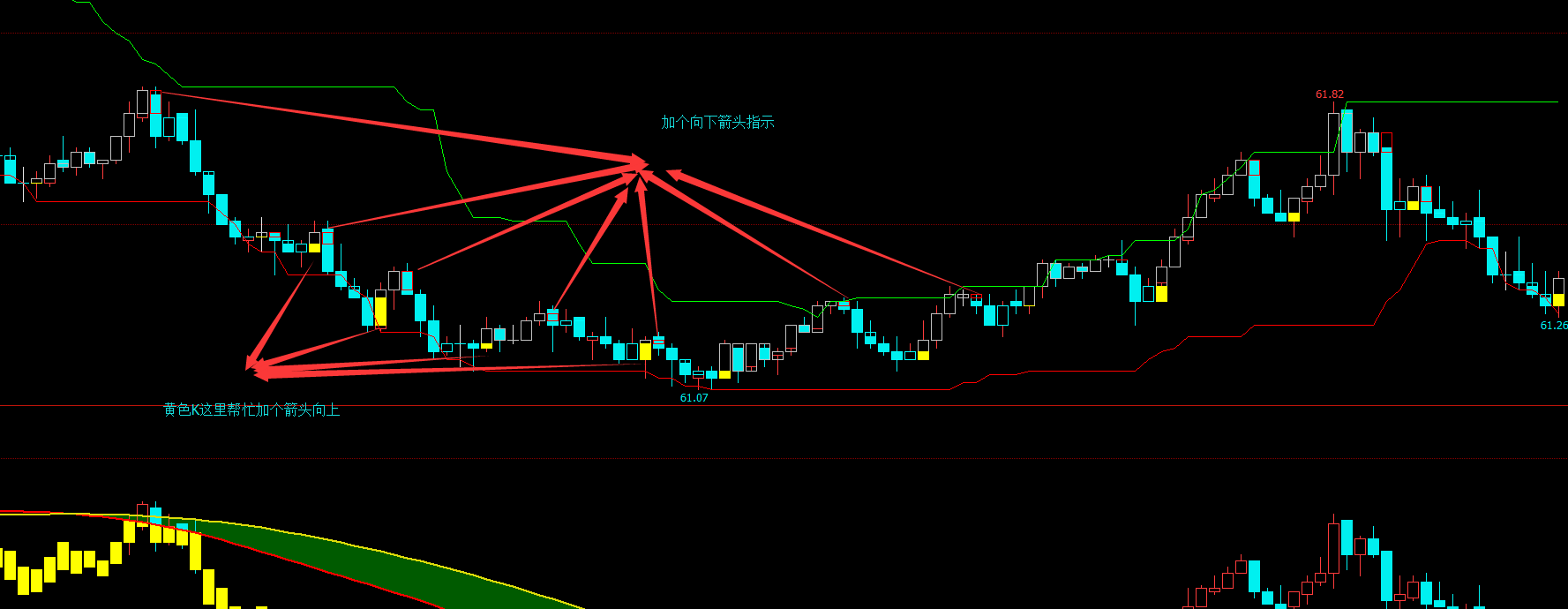 核实一下:K线上出现红色方框的时候添加向下箭头?