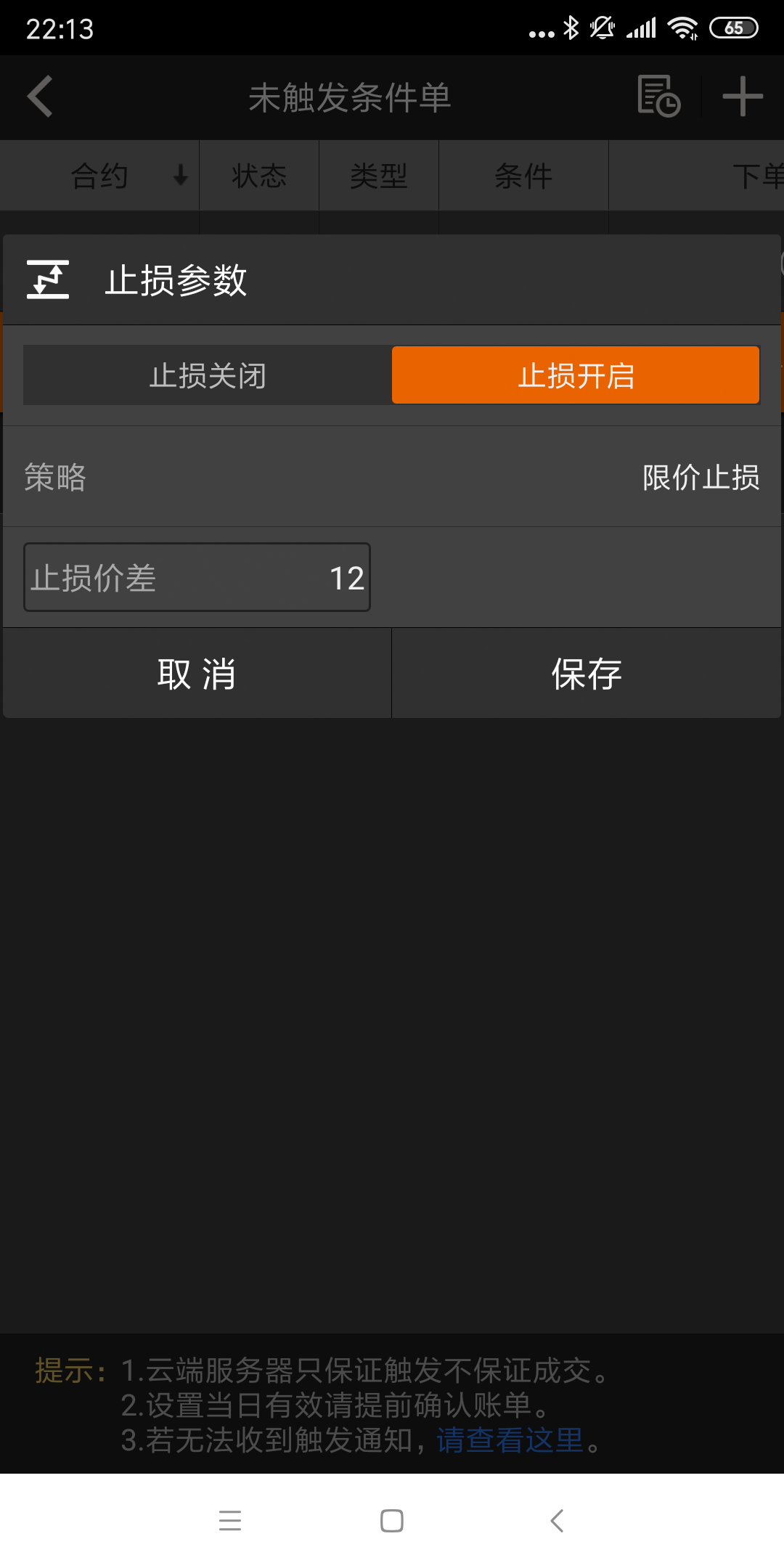 投资者咨询:限价止损 (文华财经随身行Android 5.7.2(253))