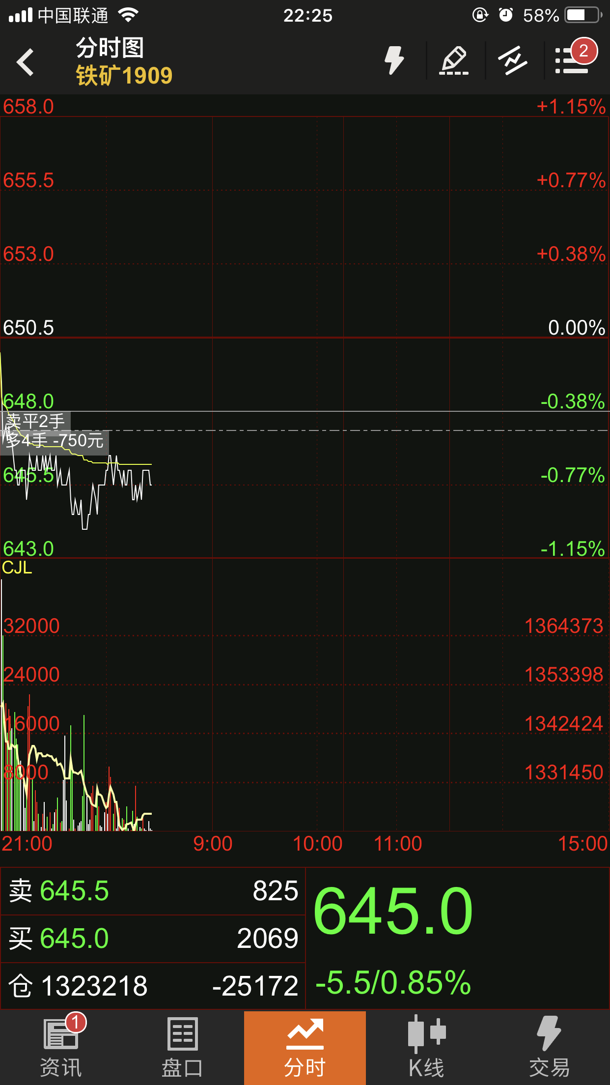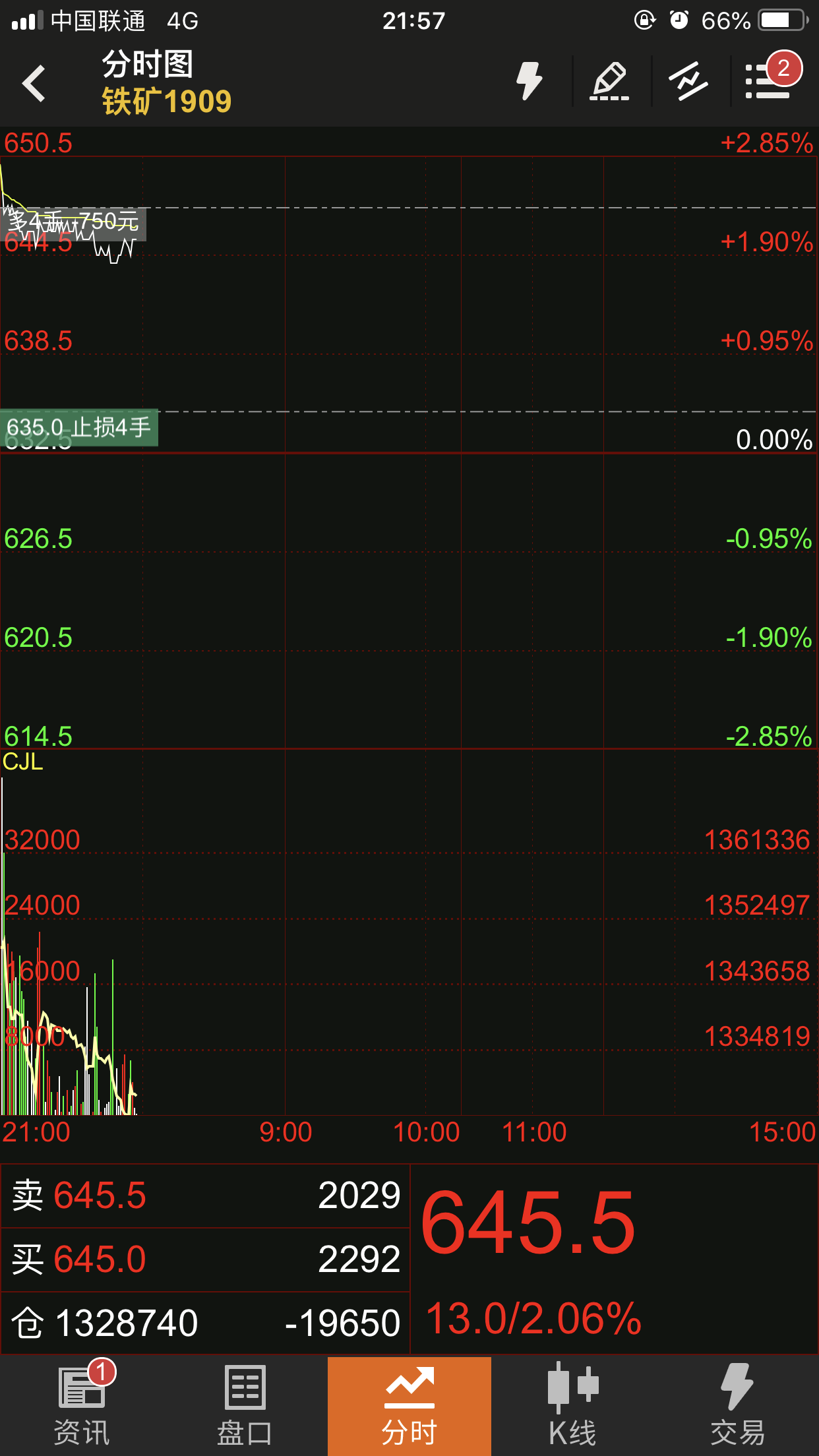 @@分时图显示(广东联通) (文华财经随身行iPhone 5.7.1)投资者咨询:@@分时图显示(广东联通) (文华财经随身行iPhone 5.7.1)来源:文华财经 日期:2019-5-9 22:17 图一 文件名:D6C115A0-C414-4298-B530-E36EE410C3B8.png 投资者咨询:@@分时图显示(广东联通) (文华财经随身行iPhone 5.7.1)来源:文华财经 日期:2019-5-9 22:17 图二 文件名:894228B1-E3D0-46E5-8006-01C8675E5E7D.png技术人员回复日期:2019-5-9 22:22 右上角》主菜单》关于,看下这里的网络节点是多少,我们确认下 此外,您是一直停留在分时图,行情跳动整体分时图也会跳动? 是否有切换界面等操作?具体有什么规律吗 您从后台退出软件,重新进入再观察看看是否还有这个问题? 您切换到稳定的电信WIFI环境再观察看下