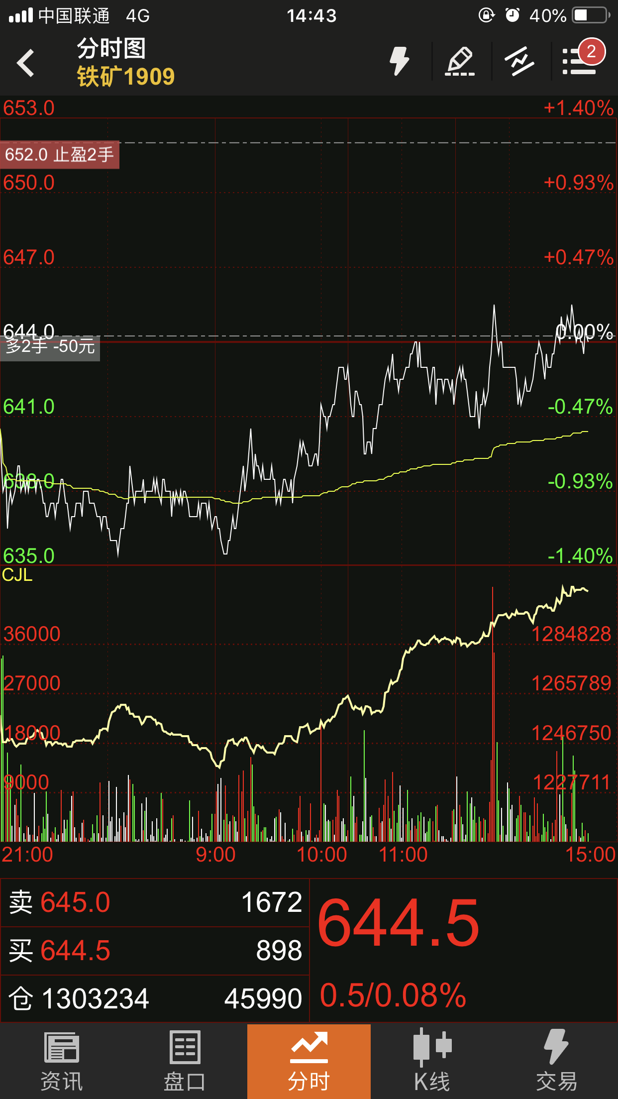 买卖手数几分钟都不动 (文华财经随身行iPhone 5.7.1)投资者咨询:买卖手数几分钟都不动 (文华财经随身行iPhone 5.7.1)来源:文华财经 日期:2019-5-9 21:34 买卖手数几分钟都不动 文件名:699FB82F-7244-4E01-BC74-DB316A0D9DE0.png投资者咨询:买卖手数几分钟都不动 (文华财经随身行iPhone 5.7.1)来源:文华财经 日期:2019-5-9 21:34 对比图 文件名:DDEC75D1-ABA1-4DC8-BDBA-AF85D7CC72AF.png技术人员回复日期:2019-5-9 21:41 您截图是今天下午的行情 盘中实时数据接收依赖本地网络,是您本地网络质量不好,影响了数据接收的 建议您切换到稳定的电信WIFI环境下使用,会有明显改善 网络优化参考 http://db.wenhua.com.cn/loginnews/bandwidth.asp