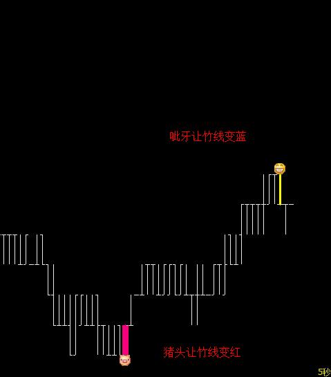 DRAWLINE(CROSS(盖1,0.5),H,CROSS(盖1,0.5),L,RGB(249,0,124)),LINETHICK3;//压力支撑变色K线附属((1))