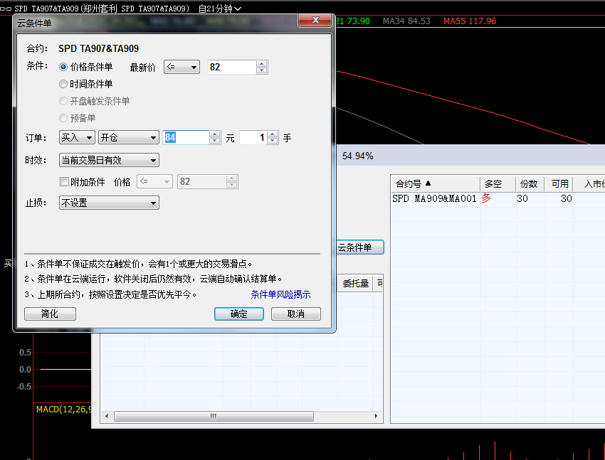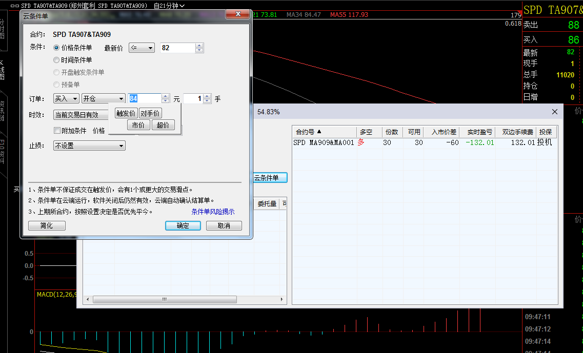条件单界面设置的是委托价,不是成交价