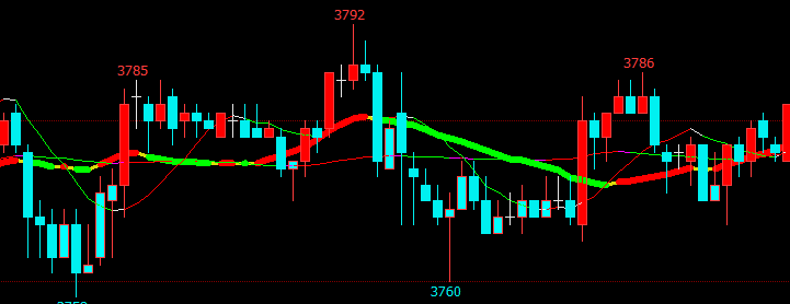 //FILLRGN(C>MA5&&MA2>MA3,MA2,MA3,COLORLIGHTRED);//价格在20周期均线之上,10周期线大于20周期线时用红色填充