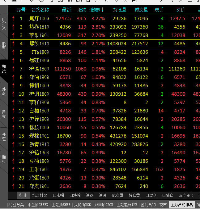 投资者咨询:已经换了合约,但主力合约还是1810的合约。 (文华财经WH6赢顺V6.7)