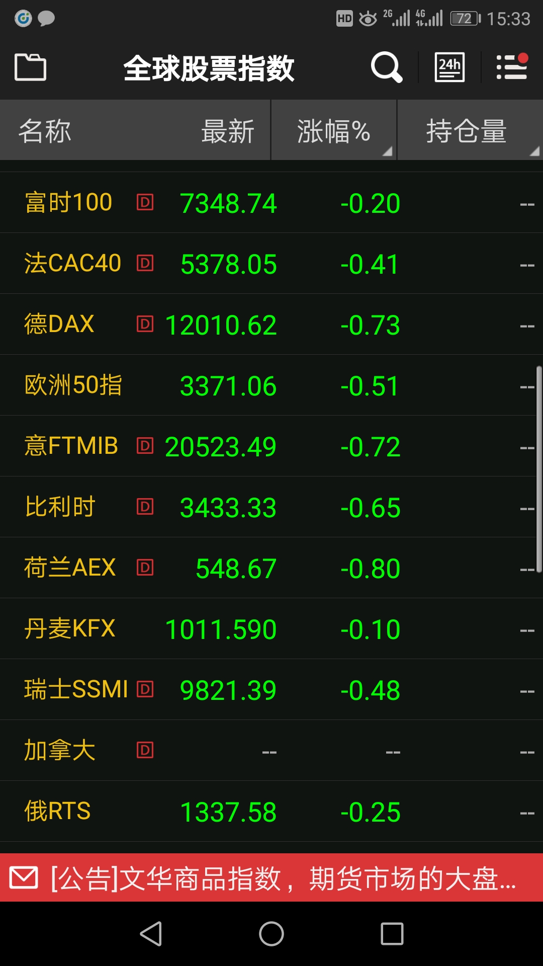 国外股票指数 (文华财经随身行Android 5.8.1(258))投资者咨询:国外股票指数 (文华财经随身行Android 5.8.1(258))来源:文华财经 日期:2019-6-18 15:41 请问后面的D是什么意思? 文件名:Screenshot_20190618-153337.jpg技术人员回复日期:2019-6-18 15:45 表示数据是延时15分钟的