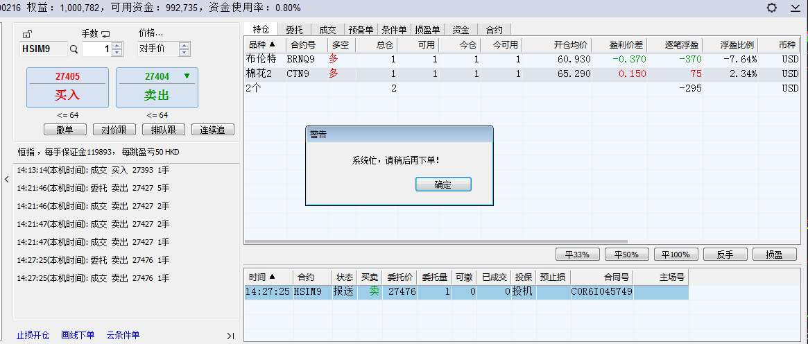 投资者咨询:@@系统忙,请稍后下单!这是怎么回事?end (文华财经WH6赢顺V6.7)