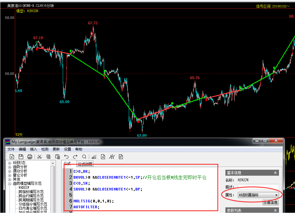 请老师帮忙修改 (文华财经WH8赢智V8.2)投资者咨询:请老师帮忙修改 (文华财经WH8赢智V8.2)来源:文华财经 日期:2018-8-23 8:51 为什么加载上去没有信号?请帮忙修改,谢谢。 C>O,BK;BKVOL>0 &&CLOSEMINUTE1<=1,SP;//开仓后当根K线走完即时平仓C<O,SK;SKVOL>0 &&CLOSEMINUTE1<=1,BP;MULTSIG(0,0,1,0);AUTOFILTER;技术人员回复日期:2018-8-23 8:54 本地回测是有信号的,您是加载至什么合约。什么周期没有信号的呢? 投资者咨询:请老师帮忙修改 (文华财经WH8赢智V8.2)来源:文华财经 日期:2018-8-23 8:51 美原油,5分钟周期。技术人员回复日期:2018-8-23 9:07 本地选择的,美原油10,5分钟周期,进行测试的,同样是有信号的, 您对应检查一下格式与指标属性看下