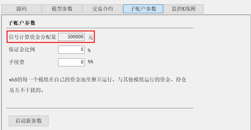 子账户参数里显示的资金分配量,是在装入模组时就已经确定的