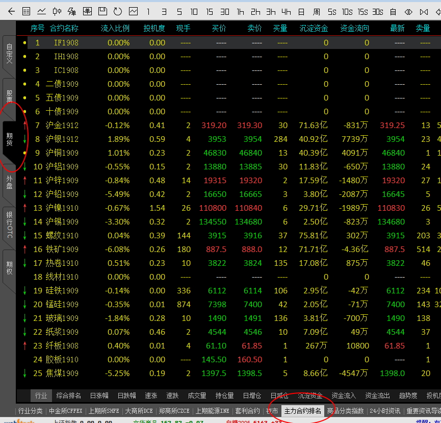 找到了,没有把主力合约全部放在一起又同时显示标识的列表吗