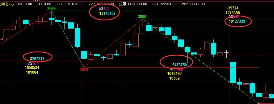 DRAWNUMBER(CROSS(BACKSET(HHH=1,SUMBARS(HHH=1,2)/2),0.5)&&SS1<0,REF(VALUEWHEN(HHH=1,H),1),SS1/QQ1,1,COLORMAGENTA),FONTSIZE16,ALIGN0;