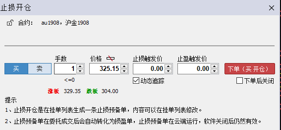 动态追踪 (文华财经WH6赢顺V6.7)投资者咨询:动态追踪 (文华财经WH6赢顺V6.7)来源:文华财经 日期:2019-8-2 15:21 止损止盈单采用了动态跟踪,那么动态的止损止盈价应该是 百分比或者是金额,怎么没有可选框呢? 投资者咨询:动态追踪 (文华财经WH6赢顺V6.7)来源:文华财经 日期:2019-8-2 15:21 WH6 技术人员回复日期:2019-8-2 15:24 在截图中点击止损触发价这里填写即可 在下方就可以看到价差了 后续就会按照这个价差在成交后继续跟踪止损的 投资者咨询:动态追踪 (文华财经WH6赢顺V6.7)来源:文华财经 日期:2019-8-2 15:21 应该同时显示价差的百分比, 横向可比性好 技术人员回复日期:2019-8-2 15:39 您理解错了 动态追踪是根据设置止损单后,最高价回撤固定价差作为止损触发价格的 这里是没有百分比判断的,因此只显示价差的 具体可以进入这个连接了解下原理 https://www.wenhua.com.cn/new_guide/Wh6/jy4.html