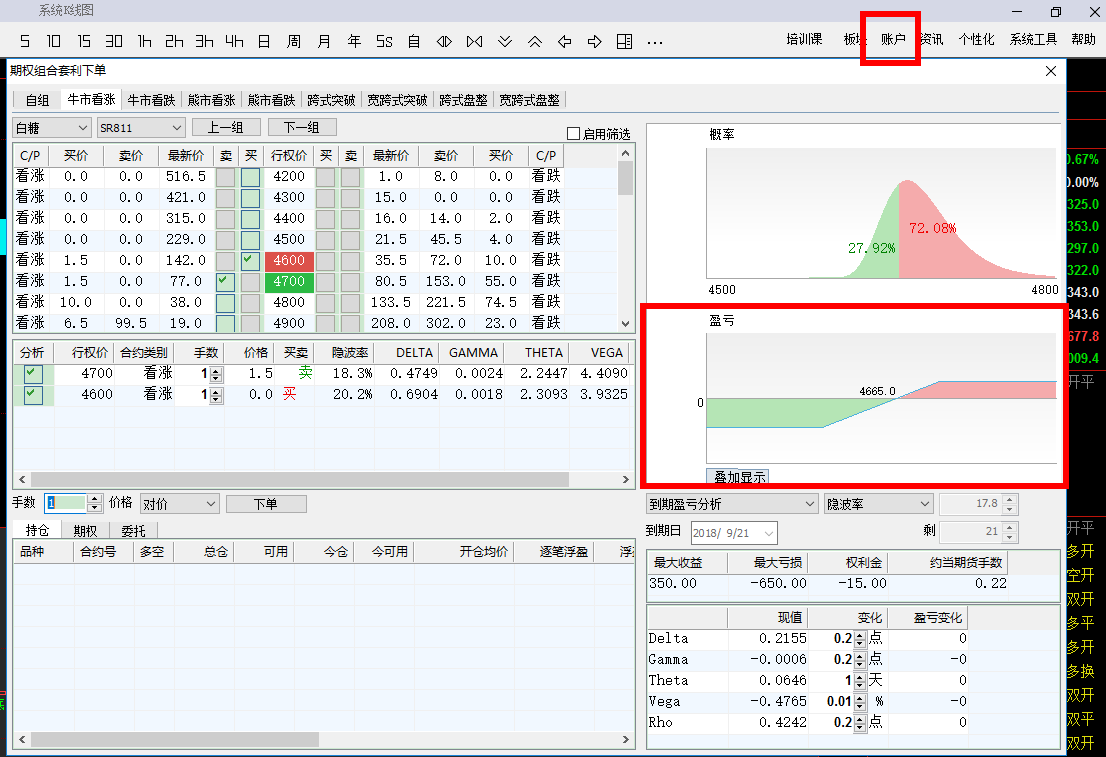 期权价格处理 (文华财经WH6赢顺V6.7)投资者咨询:期权价格处理 (文华财经WH6赢顺V6.7)来源:文华财经 日期:2018-8-31 15:54 能否根据两个或多个期权合约之间进行加减乘除处理,得出:1、处理后的实时数据;2、根据处理后的数据做成实时的曲线图、K线图? 技术人员回复日期:2018-8-31 16:41 期权无法生成套利价差K线图的 期权组合策略一般关注策略整体的盈亏曲线图与盈亏平衡点价格 可以在右上角》账户》期权组合下单界面查看,并直接对组合策略下单