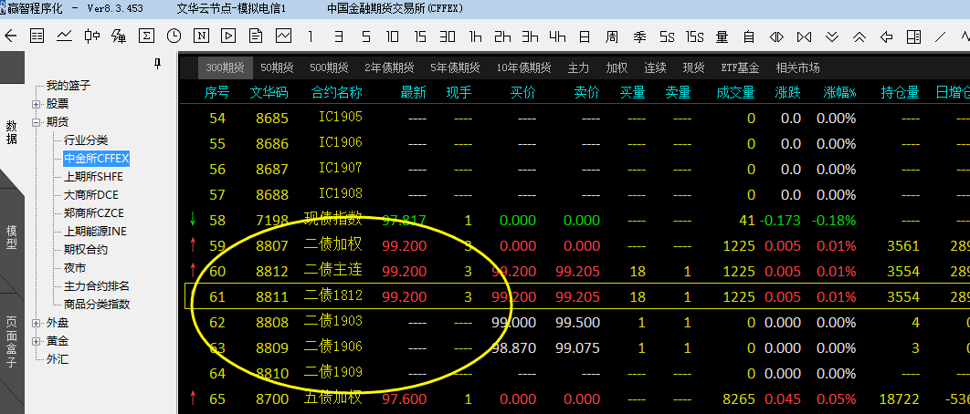 WH8没有两年期国债期货的数据,WH6有 (文华财经WH8赢智V8.2)投资者咨询:WH8没有两年期国债期货的数据,WH6有 (文华财经WH8赢智V8.2)来源:文华财经 日期:2018-8-22 16:56 老师如题技术人员回复日期:2018-8-22 17:03 wh8中也是可以查看的,如图: 软件右上角》系统工具》更新交易所码表》将中金所码表更新后再看下