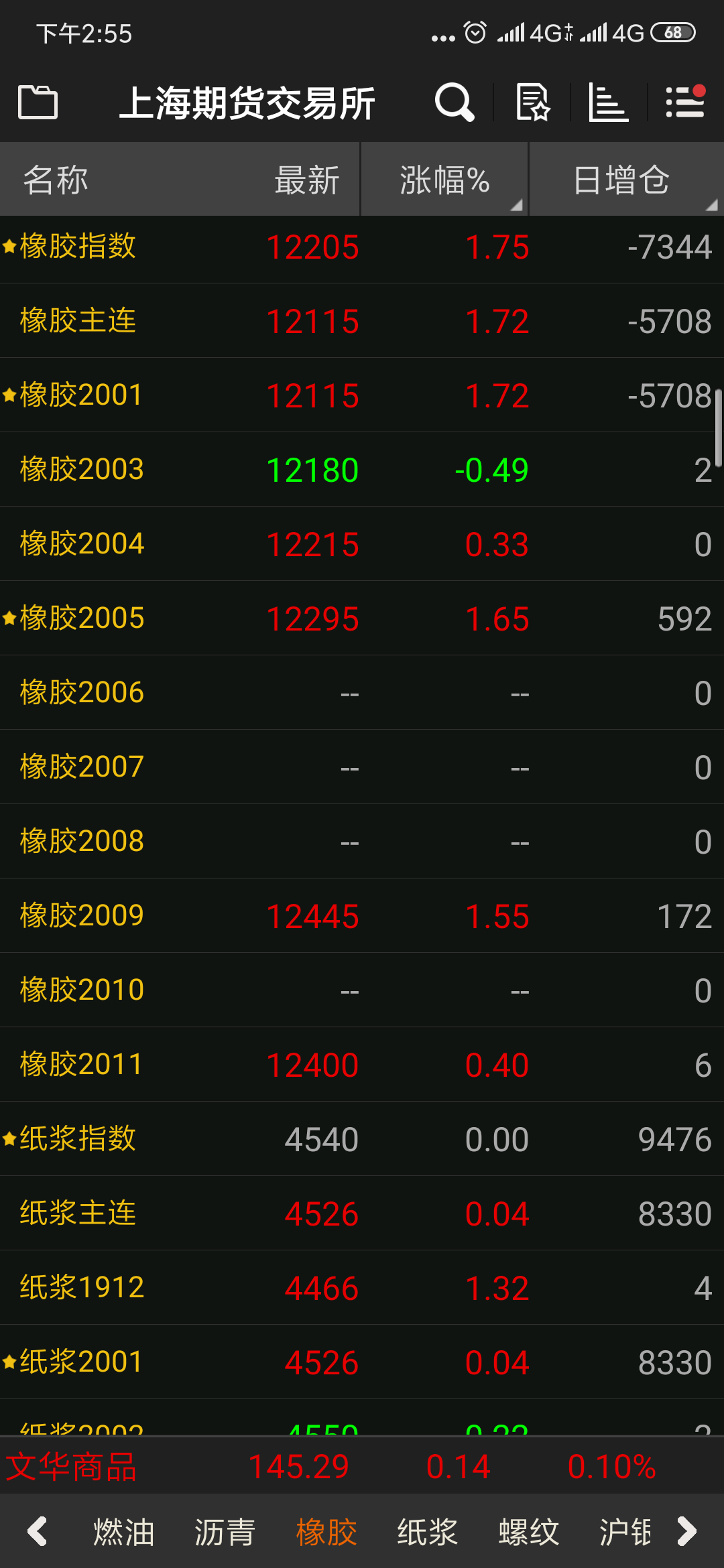 请教下橡胶指数的日增仓是怎么计算的。 (文华财经随身行Android 5.9.2(269))来源:文华财经 日期:2019-11-18 15:04