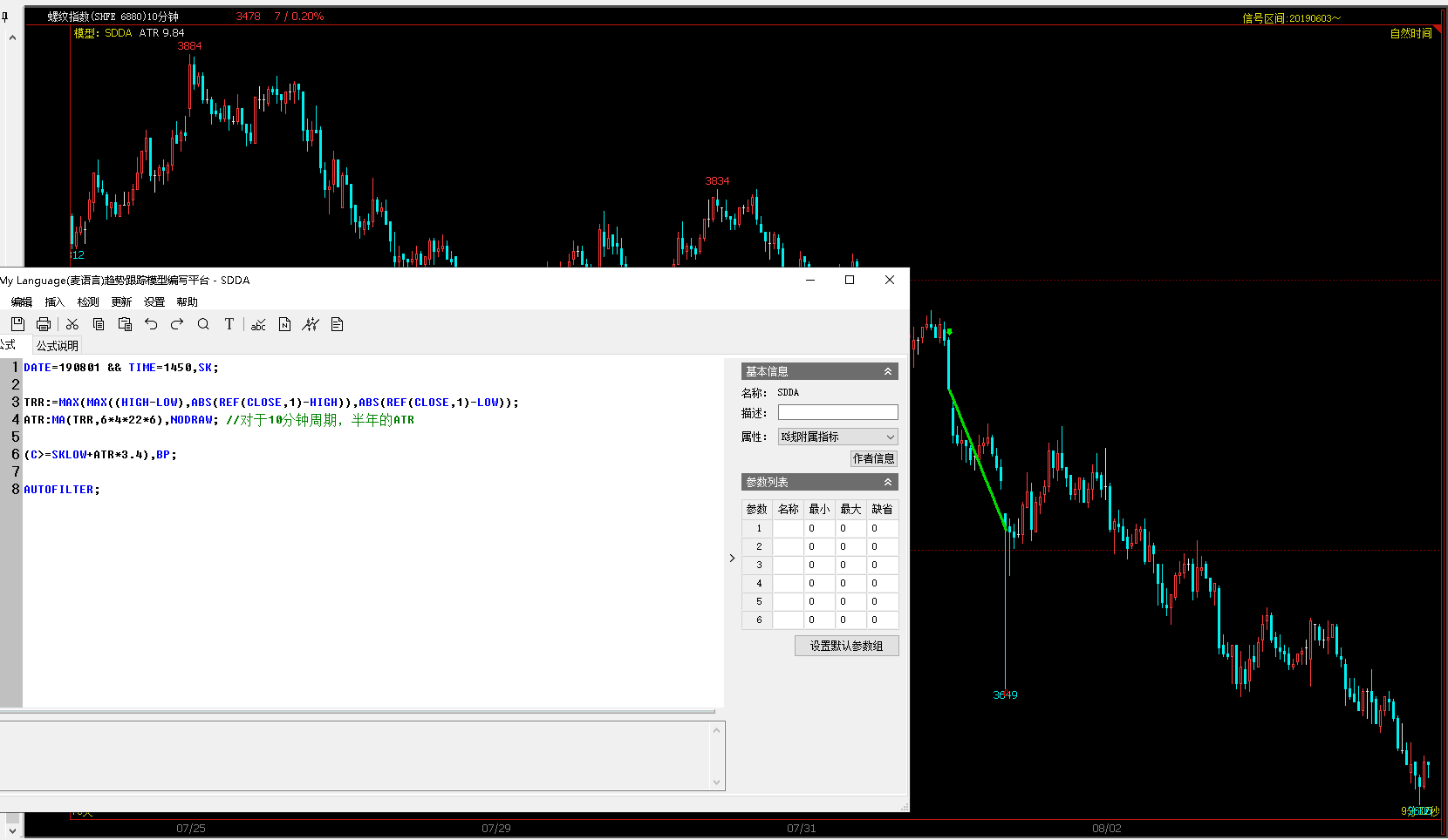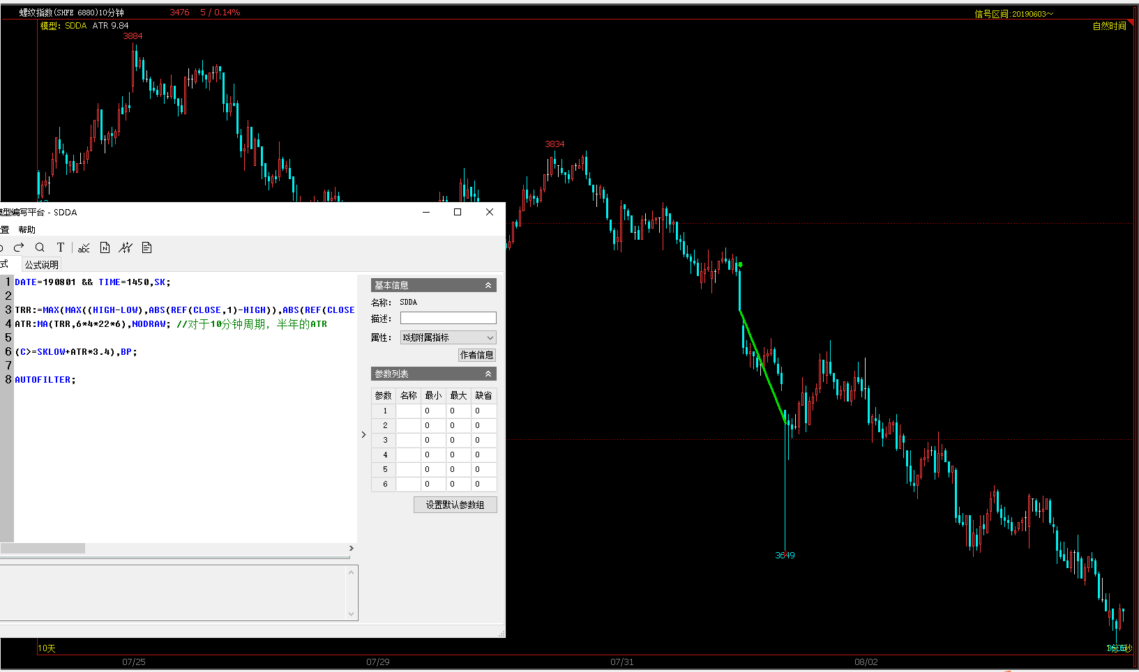 我的意思是想在2019年8月1日的14:50--15:00的这根10分钟k线走完的时候开空,然后满足Close>=SKLow+ATR*3.4平空;