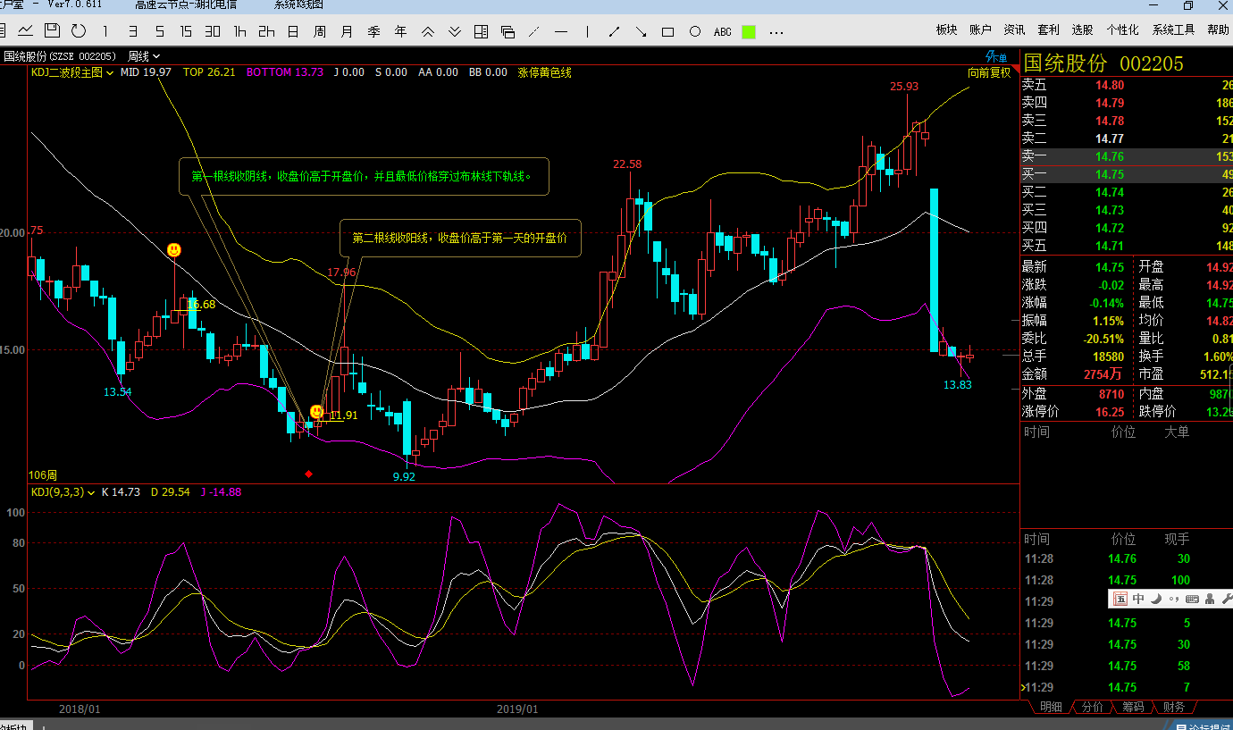 投资者咨询:KDJ第二波阳包阴 (文华财经WH6赢顺V6.7)