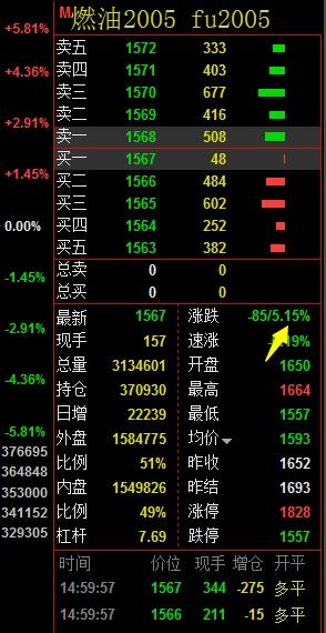 你好老师,盘口,涨幅,不一样; (文华财经WH6赢顺V6.7)投资者咨询:你好老师,盘口,涨幅,不一样; (文华财经WH6赢顺V6.7)来源:文华财经 日期:2020-3-12 14:57 技术人员回复日期:2020-3-12 14:59 您是跟哪里的值对比发现不一样的?k线查价框的涨跌/涨跌幅? 提供下完整的截图和对比效果,我们针对帮您分析 投资者咨询:你好老师,盘口,涨幅,不一样; (文华财经WH6赢顺V6.7)来源:文华财经 日期:2020-3-12 14:57 技术人员回复日期:2020-3-12 15:11 1楼和3楼截图都是基于昨收1652计算的涨跌 只是截图当时的最新价是不同的,所以涨跌也不同1楼:(1579-1652)/1652=-0.04423楼:(1567-1652)/1652=-0.0515