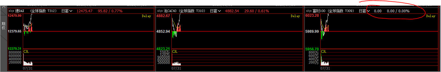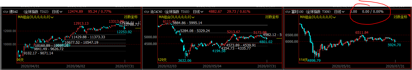 [求助]为什么不显示涨跌幅? (文华财经WH6赢顺V6.8)投资者咨询:[求助]为什么不显示涨跌幅? (文华财经WH6赢顺V6.8)来源:文华财经 日期:2020-7-31 15:52 如图,富时100的涨跌幅一直都是0,别的指数都正常,比如德国DAX指数就能显示正确的涨跌幅。 这是为什么?怎么让富时100也正常显示涨跌幅?技术人员回复日期:2020-7-31 15:54 是您的期货公司没有行情数据授权,因此K线图不会自动更新的,因此也就不会显示涨跌幅的 您可以进入K线图分时图F11刷新,手动更新刷新出新的行情 或者使用付费软件wh7可以自动更新的 下载地址 www.wenhua.com.cn
