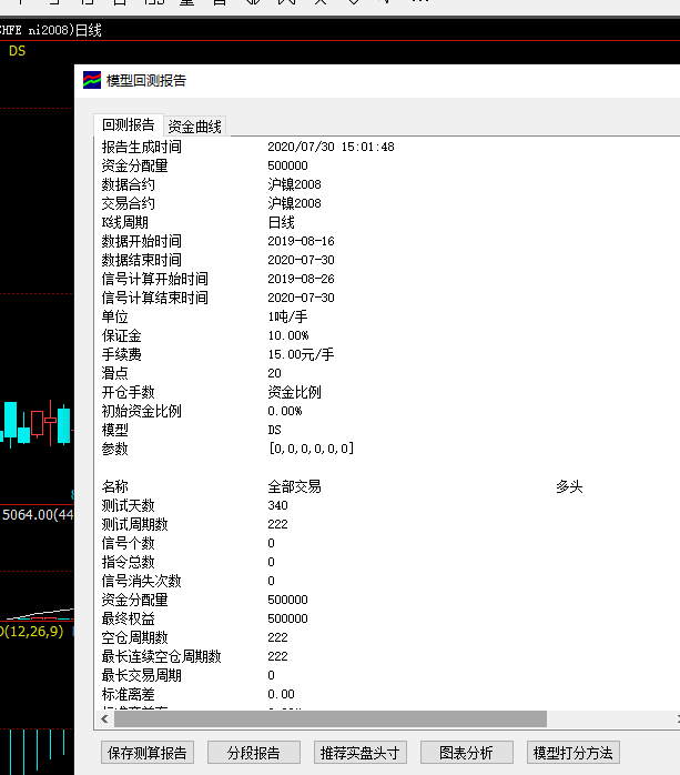 投资者咨询:我把模型导入,回测报告盈亏数显示为0 (文华财经WH6赢顺V6.8)