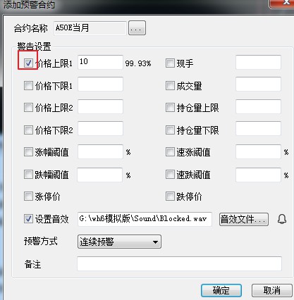 设置预警却报【你还没有设置预警选项】 (文华财经WH6赢顺V6.8)投资者咨询:设置预警却报【你还没有设置预警选项】 (文华财经WH6赢顺V6.8)来源:文华财经 日期:2020-7-31 10:17 wh6电脑版,设置预警却报【你还没有设置预警选项】,一头雾水,请大侠帮忙,谢谢 技术人员回复日期:2020-7-31 10:19 在设置价格预警时,除了添加预警内容,前面的勾选项也要勾选才能有效的 您再试下