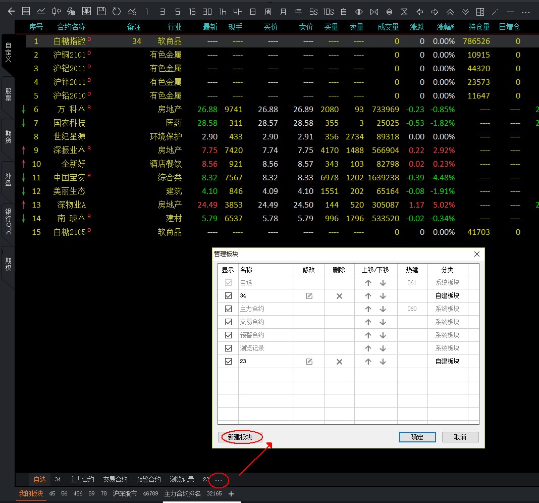 我想在文华建一个股票的版面 (文华财经WH6赢顺V6.8)投资者咨询:我想在文华建一个股票的版面 (文华财经WH6赢顺V6.8)来源:文华财经 日期:2020-7-30 21:00 我想在文华建一个股票的版面,怎么快捷添加股票技术人员回复日期:2020-7-30 21:01 选中合约右键-》加入自选 另外,如图位置新建自选投资者咨询:我想在文华建一个股票的版面 (文华财经WH6赢顺V6.8)来源:文华财经 日期:2020-7-30 21:00 我不想放在自选了,股票单独放在一个界面技术人员回复日期:2020-7-30 21:09 参考2楼方法,新建版块