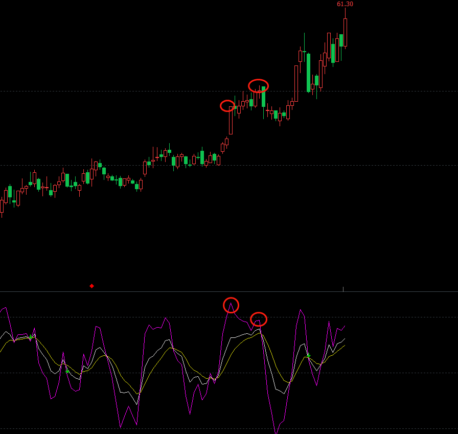 A:=CROSSDOWN(K,D)&&HH>HH2&&MHD<MHD2;//顶背离