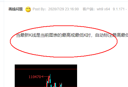 当最新K线是当前图表的最高或最低K时,自动标注最高最低价会如图两种状态来回变换,导致K线图来回跳动,这时无法精准画线