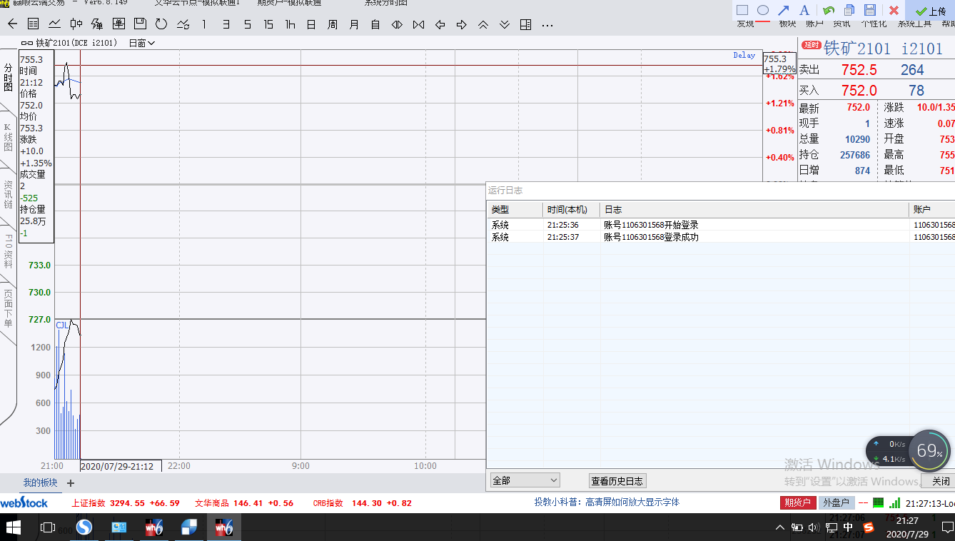模拟行情延时 (文华财经WH6赢顺V6.8)投资者咨询:模拟行情延时 (文华财经WH6赢顺V6.8)来源:文华财经 日期:2020-7-29 21:28行情显示滞后,电脑时间(正确时间)都9点27分了,行情还是9点12分的 文件名:screenshot20200729212726.png 技术人员回复日期:2020-7-29 21:29wh6模拟板提供的是延时15分钟的数据,用于模拟练习延时数据不影响交易的,想要实时行情,需要使用随身行,或者购买wh7,官网下载:https://www.wenhua.com.cn/