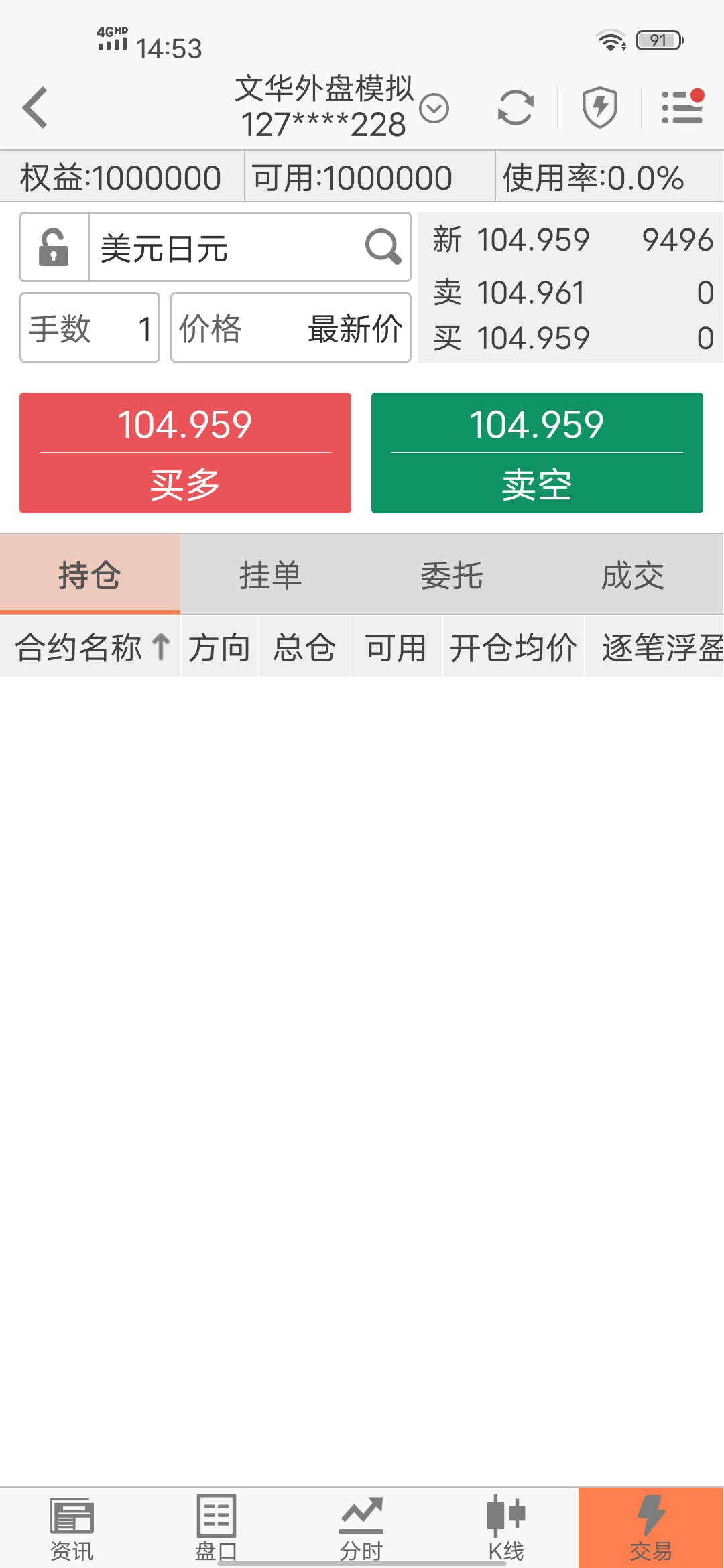 投资者咨询:模拟盘外汇怎么交易 (文华财经随身行Android 6.1.1(283))