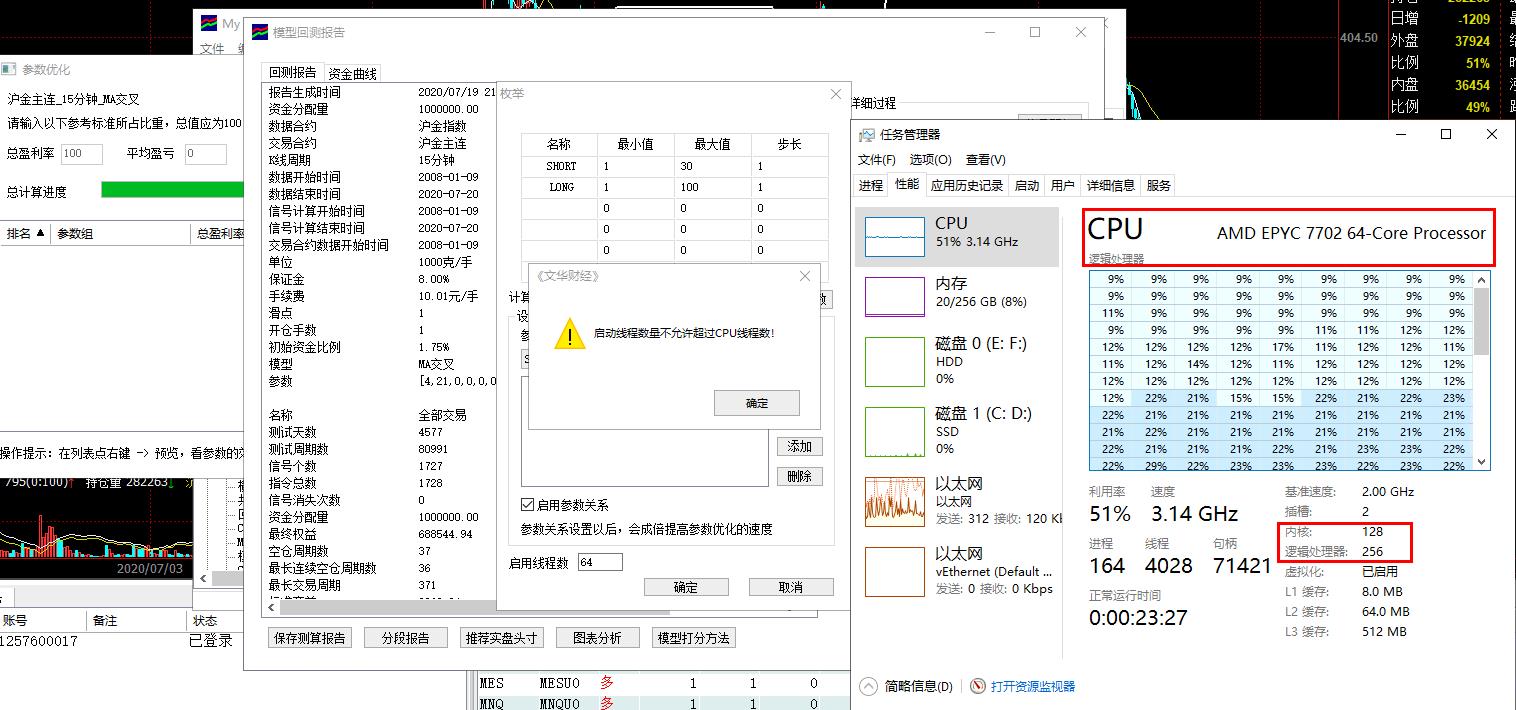 投资者咨询:文华8参数优化最大只支持64线程 (文华财经WH6赢顺V6.8)