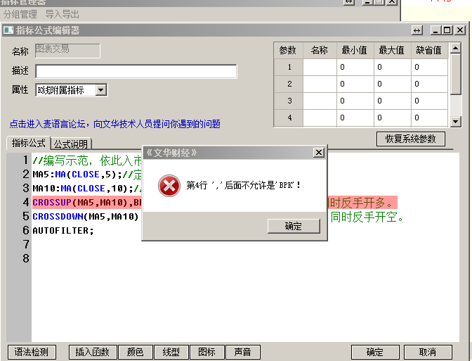 新版本6.7.84版本不支持自编公式了吗 (文华财经WH6赢顺V6.7)投资者咨询:新版本6.7.84版本不支持自编公式了吗 (文华财经WH6赢顺V6.7)来源:文华财经 日期:2018-8-22 10:50 之前版本编写的带bpk函数的公式,现在无效了。技术人员回复日期:2018-8-22 10:52 新版本不在支持交易指令了与公式预警了,其他指标类公式不变的,您可以参考下面帖子解决一下 【升级必读】赢顺Ver6.7.847功能调整说明