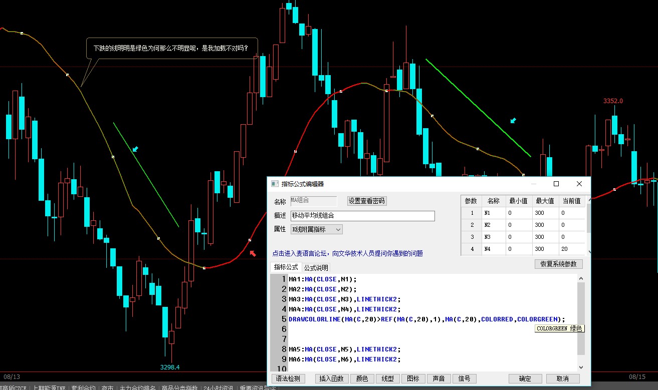 投资者咨询:[求助]均线变色问题 (文华财经WH6赢顺V6.7)