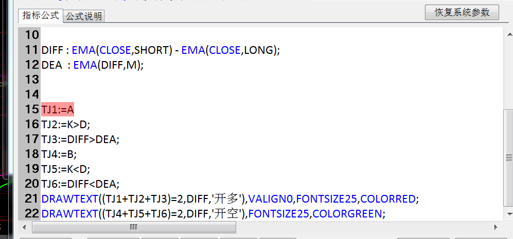 DRAWTEXT((TJ1+TJ2+TJ3)=2,DIFF,'开多'),VALIGN0,FONTSIZE25,COLORRED;