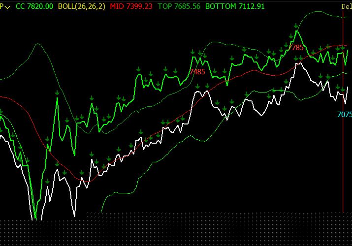 不锈钢和塑料合约价差比较大,如果指标是K线附属指标,为了让指标线条显示在同一屏幕中就会有这样的情况。