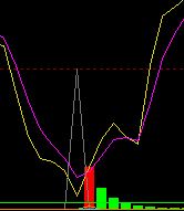 当ss5>ref(ss5,1)到ss5=ss10再到ss5>ss10(即由ss5趋势开始变化,到上穿穿ss10)时且相交后五个周期就不用管了,在整个过程中,判断每三个周期外盘总和/内盘总和,若大于1.5,这显示三角形椎体颜色紫色