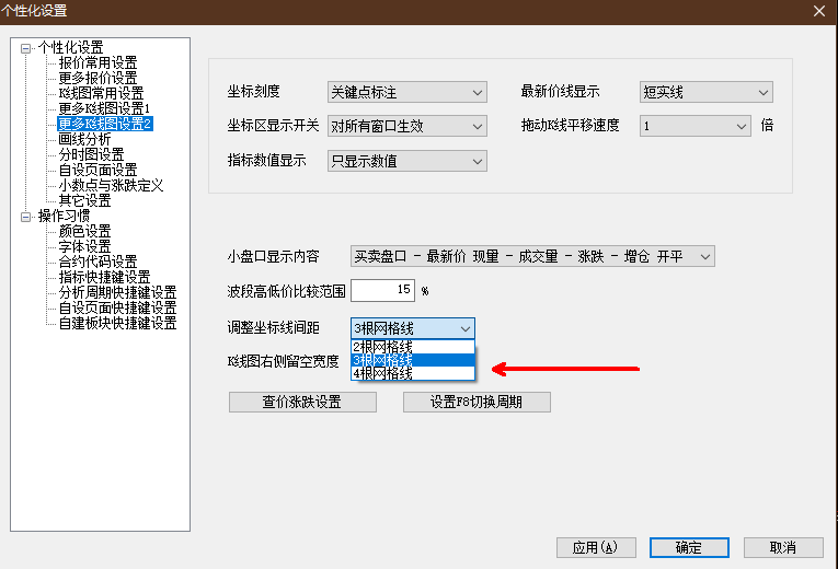 坐标线间距能不能加个5根 (文华财经)投资者咨询:坐标线间距能不能加个5根 (文华财经)来源:文华财经 日期:2020-10-5 22:48这个坐标线间距选择能不能加个5根?4根太别扭,3根范围太大了 文件名:screenshot20201005224613.png 技术人员回复日期:2020-10-6 8:19 坐标线系统设置最多4根 想要更多坐标线,可以使用合约化坐标线功能自行设置 K线图点鼠标右键-》坐标-》合约化坐标线-》固定数值投资者咨询:坐标线间距能不能加个5根 (文华财经)来源:文华财经 日期:2020-10-5 22:48 分钟线界面压缩到有部分多余空间,请问老师有办法没有 谢谢 技术人员回复日期:2020-10-6 8:49 固定数值,是根据设置的固定数值显示K线可能会压缩 您可以调整固定数值再看下 或者设置关键点等距,自适应显示