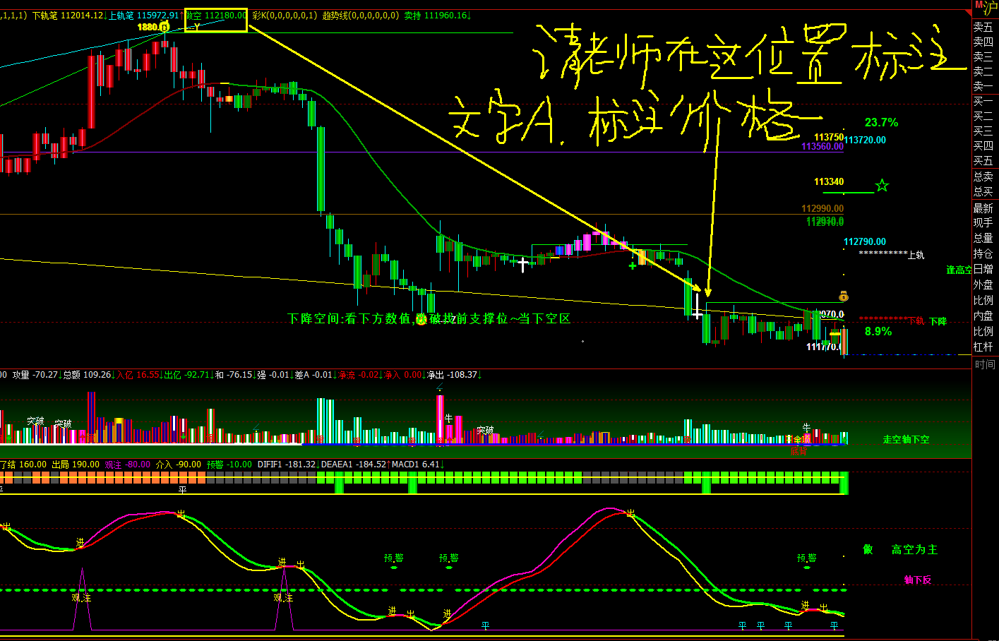 CROSS( BACKSET(ISLASTBAR,BARSLAST(做空<>REF(做空,1))+1 )=1,0.5),WORD(1,'A'),FONTSIZE28,ALIGN2;