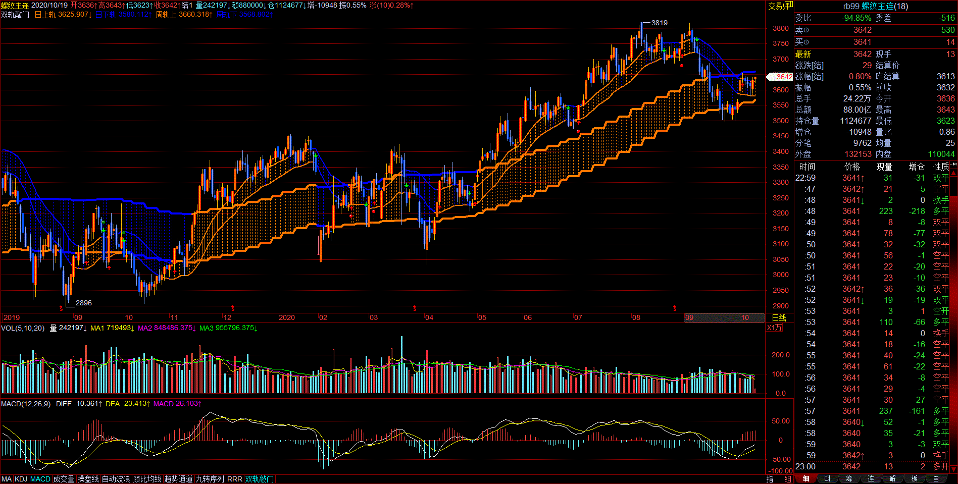 我用文华的HCL的通道指标大致对应了一下,小轨道对应HCL通道的大致参数是20,大轨道对应的大致参数是100-110左右,但他的大轨道宽度比较宽。