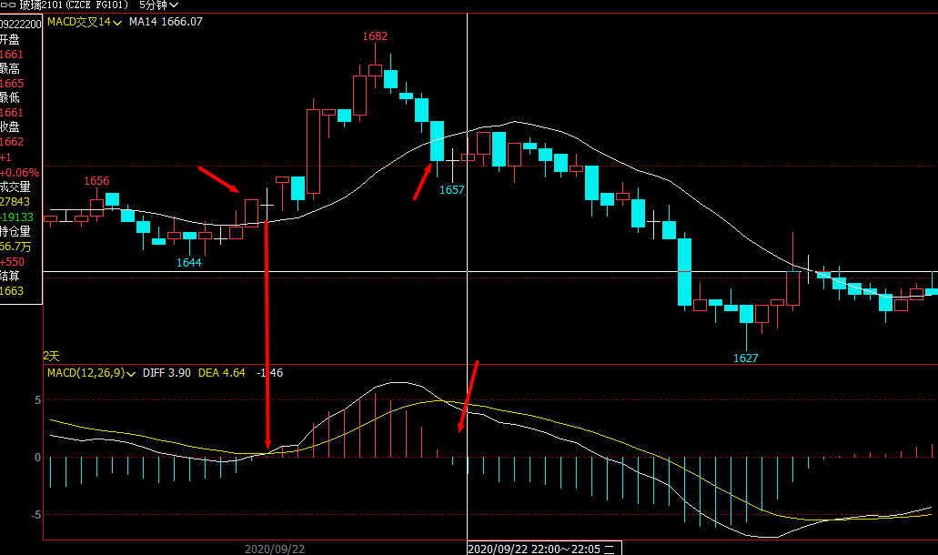 MACD交叉的时候K线不一定满足信号提示的条件,如果交叉的这根不满足,就判断前两根是否满足,满足也提示